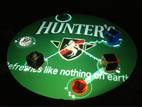 While music is being created, any logo or image can be displayed and rotated on the tabletop. Even a product can be programmed to drop the beat when placed on the Reactable.